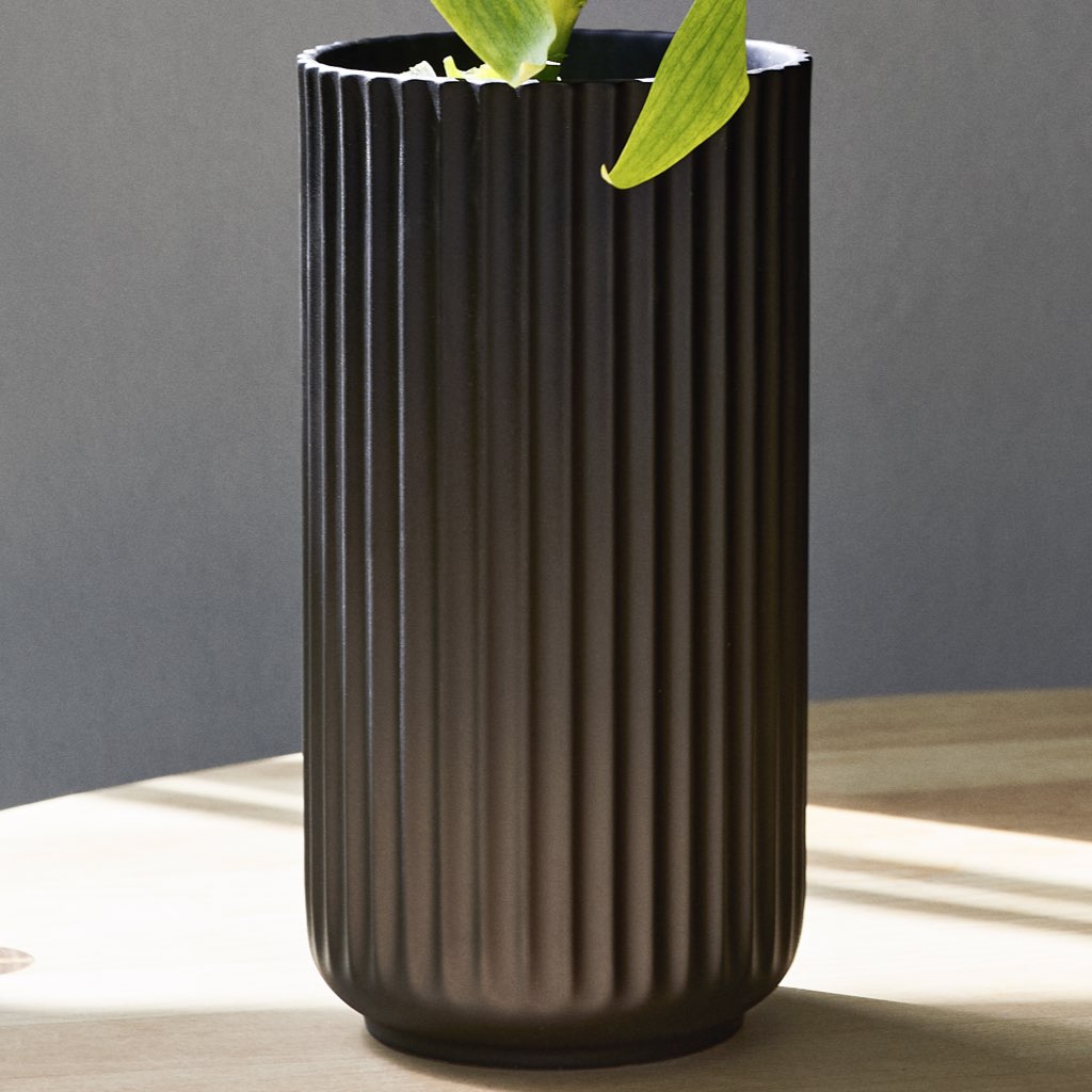 Setzen Sie ein Statement moderner Wohnkultur mit der Lyngby Vase Porzellan schwarz – einem Meisterwerk skandinavischen Designs. Die ikonischen, klaren Rillen sind das unverkennbare Markenzeichen von LYNGBY und verleihen dieser Vase eine elegante Struktur, die sowohl pur als auch mit Blumenarrangements beeindruckt.